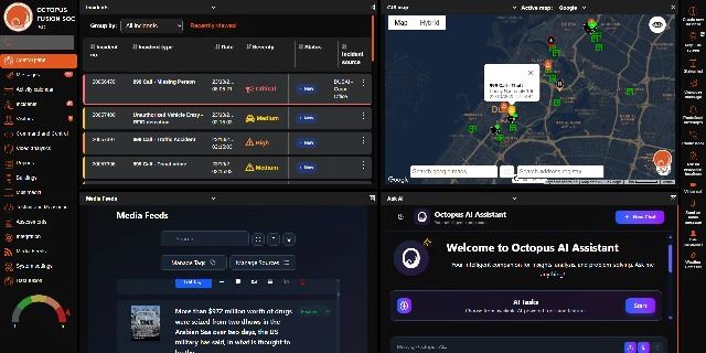 OCTOPUS fuses together all the security technologies, such as surveillance, analytics, alarms, BMS, IoT, communications, etc, in order to automate the organization's SOC. System has more than 35 modules to run the entire operational landscape and is powered by AI for automated SOC analysis.