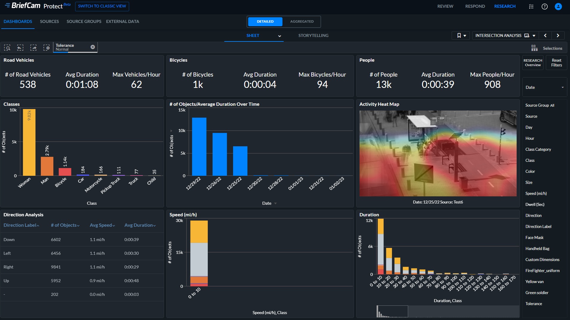 Then, using Research, the university analyzed this filtered data over time using heatmaps and trend reports to identify where micro-mobility devices and pedestrians most frequently intersected, when congestion peaked and which areas consistently posed higher risk.