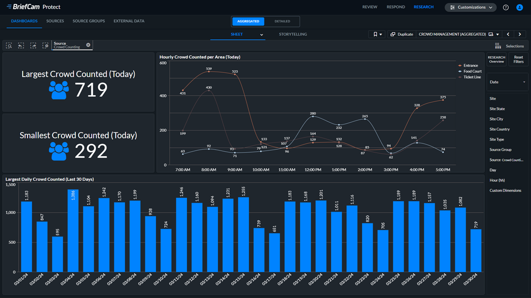 Beyond real-time response, BriefCam also supports a deeper understanding of how congestion forms and resolves over time. Using Research, airports can analyze crowd movement, queue behavior and dwell patterns across different times of day, days of the week and seasonal peaks. This makes it possible to identify recurring bottlenecks and better understand congestion in specific areas.